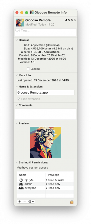 These URLs are obviously version-dependent and the versions shown are only correct at the time of writing (December 2025). Check the Macports website for the actual versions current at the time you want to install. There are versions available for macOS releases earlier than Sierra, but installing Giocoso on such ancient operating systems is definitely not supported at all, so be my guest but you're on your own for them!