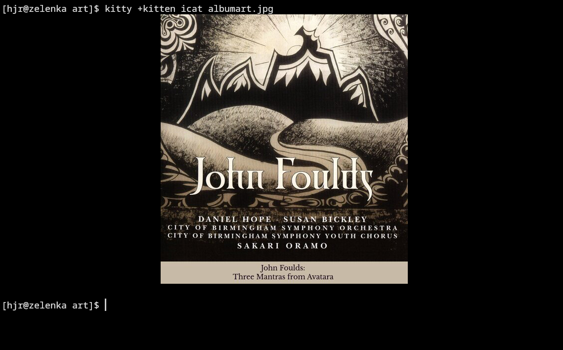 For now, my understanding is that this is the only way to get album art displayed correctly on a fully-updated Arch-based distro. More worryingly, as other distros upgrade their KDE environments, I suspect they will lose the ability to do in-terminal graphics display, too. There's nothing much I can do about that, I'm afraid, though I am on a kitty learning curve as we speak.