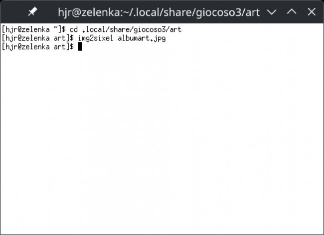 Unfortunately, you can see that kitty displaying anything requires some quite new syntax… and positioning the graphics display is nowhere near as easy to do as with sixel graphics. I'm also reluctant to make Giocoso dependent on a specific terminal emulator. So, this is not a road I'm keen to journey down.