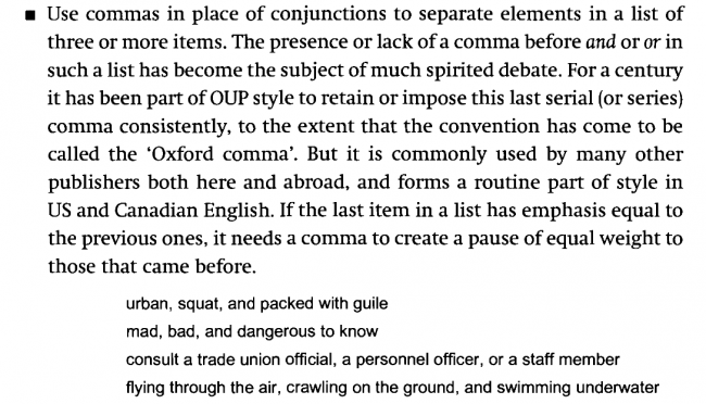 Of course, the Oxford Style Guide is going to recommend the use of the Oxford Comma (or 'serial comma' as it's sometimes called), too: