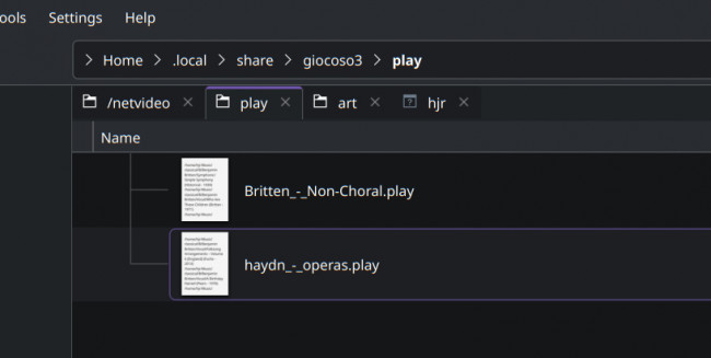 The name can be anything you like, but spaces will be silently converted to underscores. The resulting playlist is stored in $HOME/.local/share/giocoso3/play:
