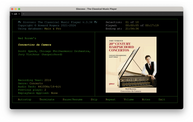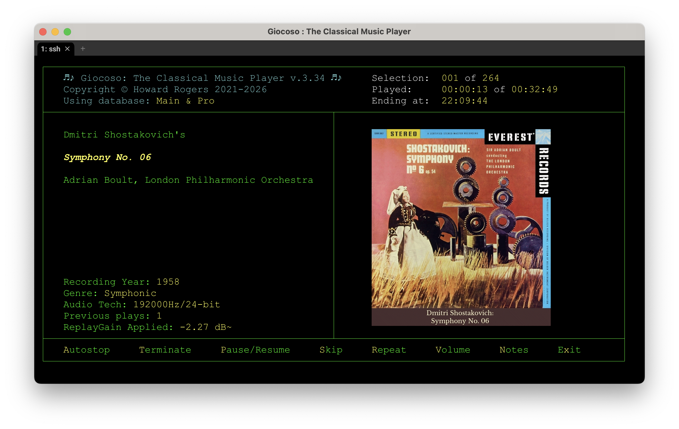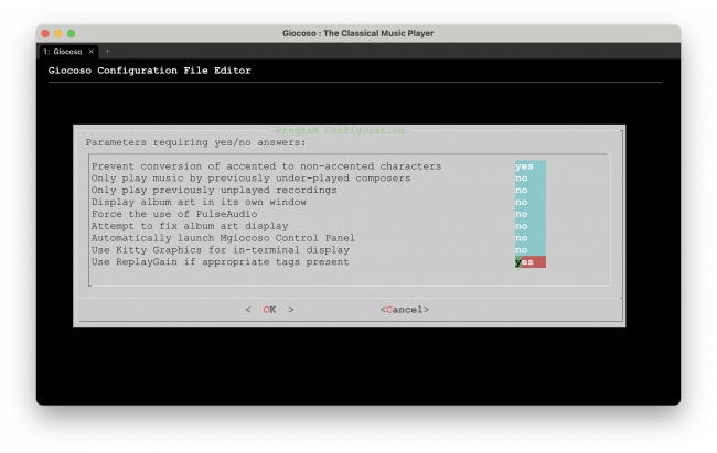 I should mention, however, that once switched on, ReplayGain stays on until you switch it off in the configuration options: you cannot flick it on and off as a piece of music plays, for example, to compare the 'before' and 'after' volumes. The way Giocoso is written, that sort of on/off mechanism is simply not physically possible.